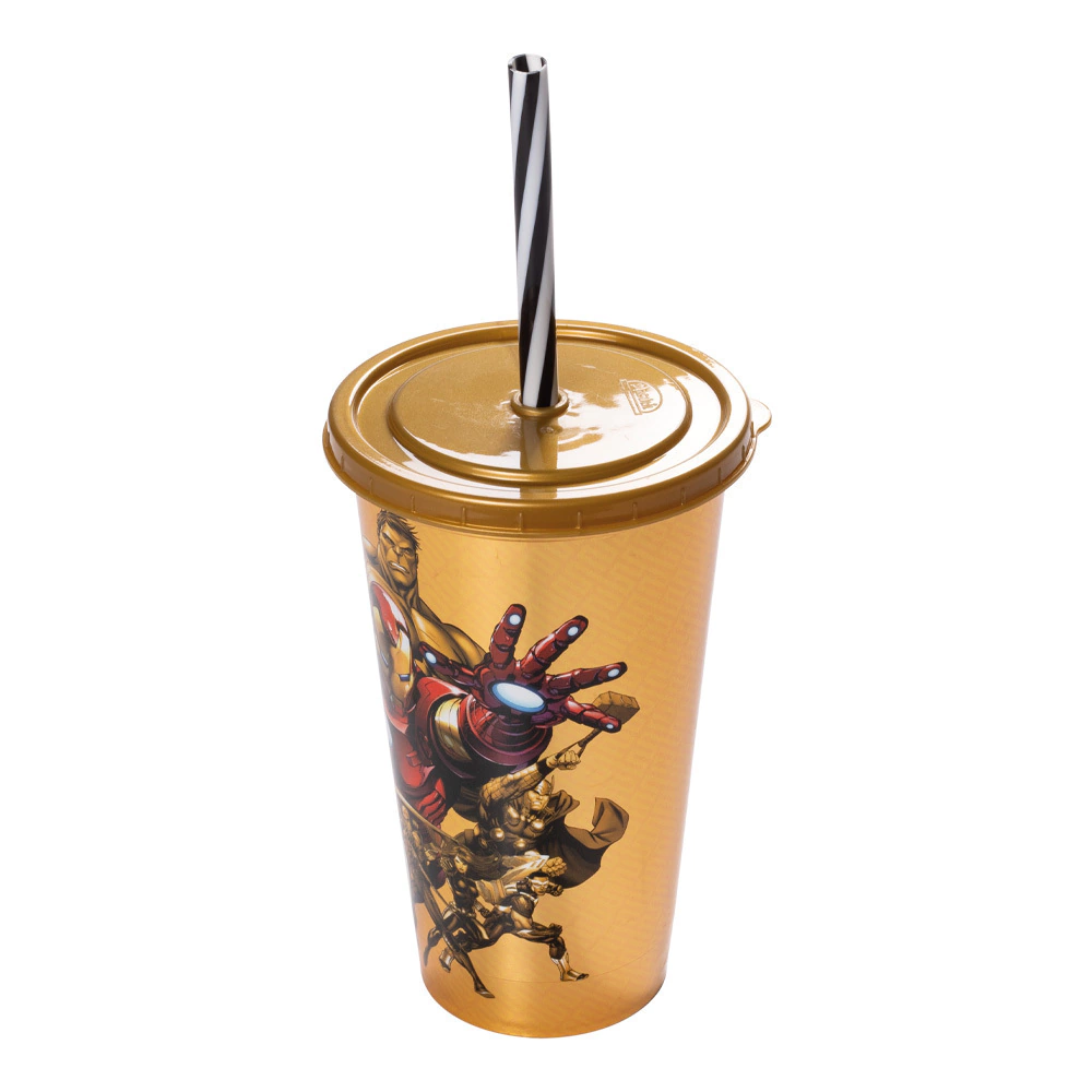 - Copo de plástico 500ml com tampa fechada e canudo.