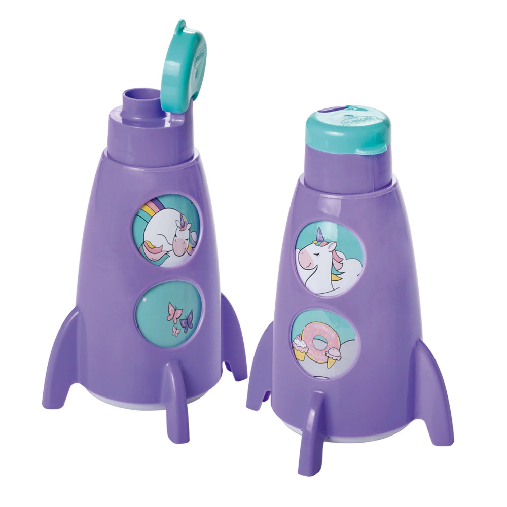 - Como funciona?? Gire o "corpinho" foguete da Garrafa, para que diferentes imagens apareçam na Janelinha!!