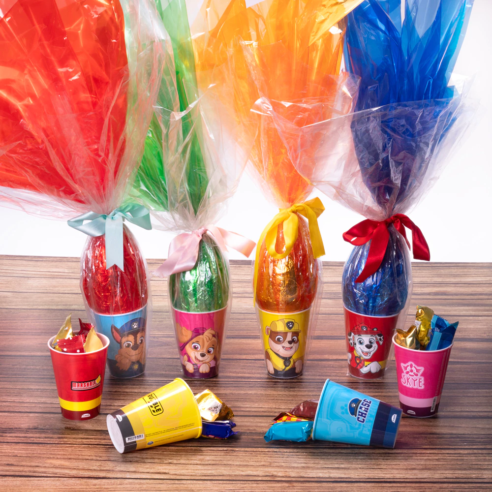 - Os copos de plástico de 280 ml são uma ótima opção como lembrancinha para seus ovos de Páscoa caseiros. A criançada poderá se deliciar com o chocolate e ainda terão um copo com seu personagem preferido para deixar a hora das refeições mais legais diariamente.