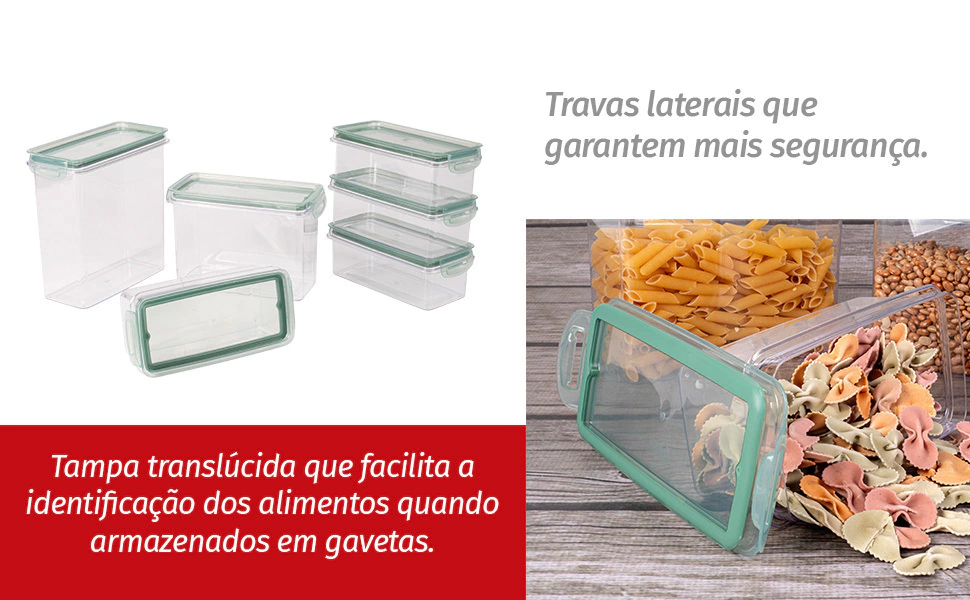 - Tampa emborrachada (no tom verde) que garante o fechamento hermético e conserva os alimentos frescos e crocantes por mais tempo.