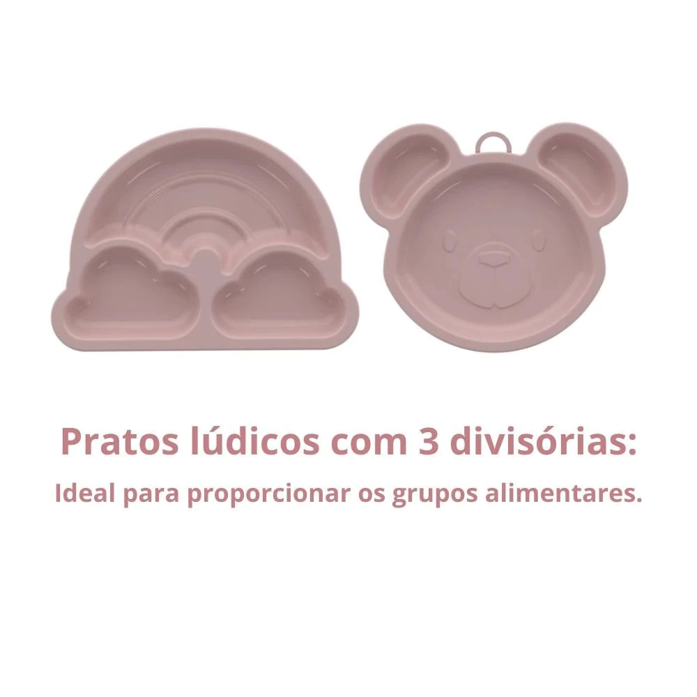 Kit Alimentação Infantil 5 Peças Menina Ursa Rosa