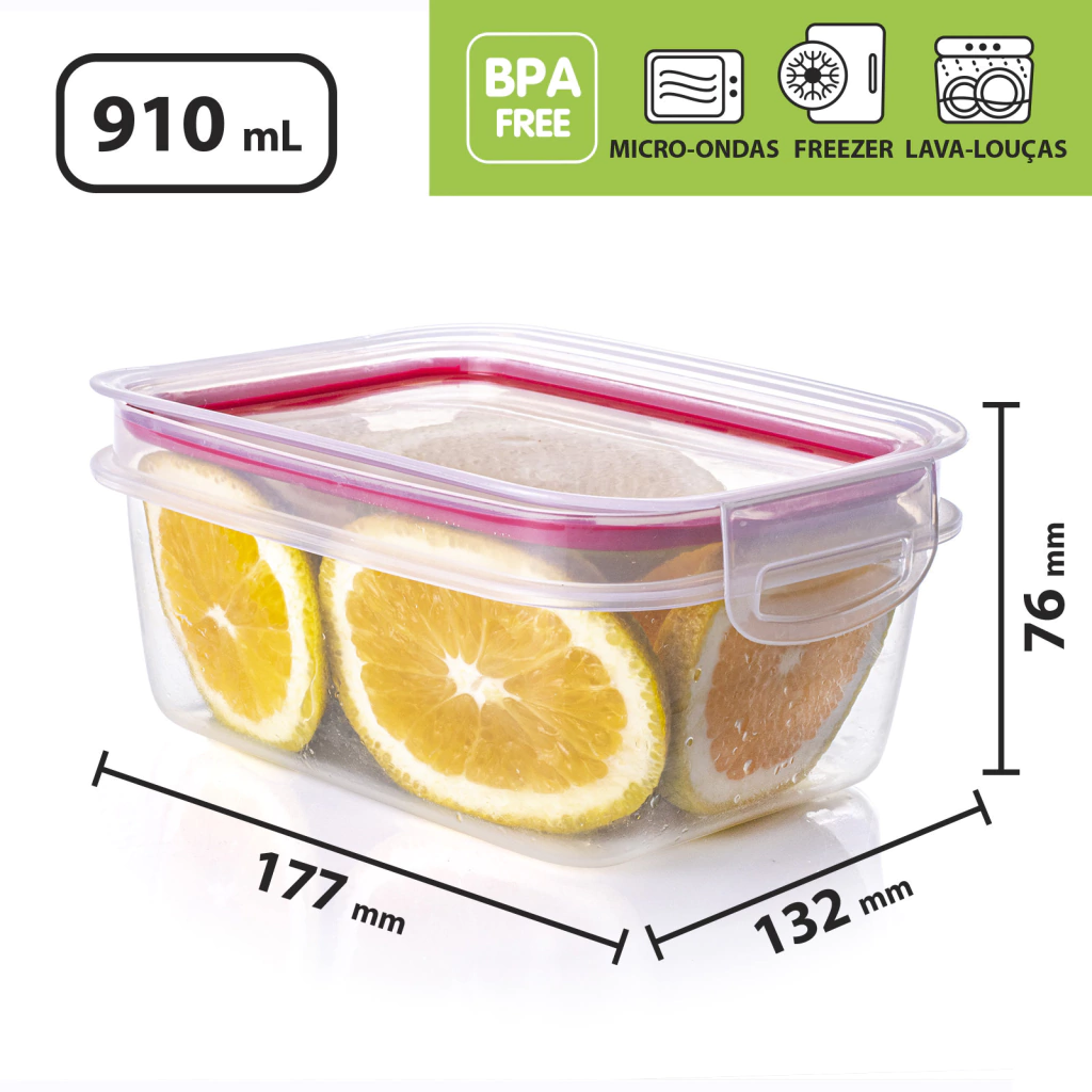 - A vedação com borracha garante o fechamento hermético, conservando os alimentos mais frescos por mais tempo. Duas travas laterais, mais garantia e segurança no fechamento.