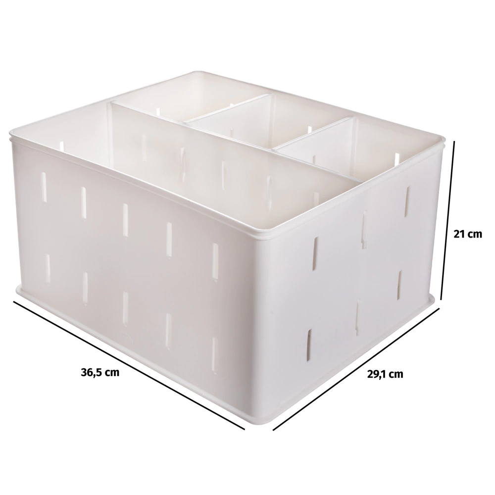 O organizador enCaixa com divisorias e altura H4 (21cm) colabora na organização de itens maiores, com mais necessidade de espaço tanto na altura, quanto comprimento (dependendo do tamanho adquirido). Ele auxilia em despensas, armários de cozinha, ajudando a organizar mantimentos e materiais de limpeza, closets e guarda roupas organizando roupas, toalhas, além de materiais de escritório, pintura, entre outros
